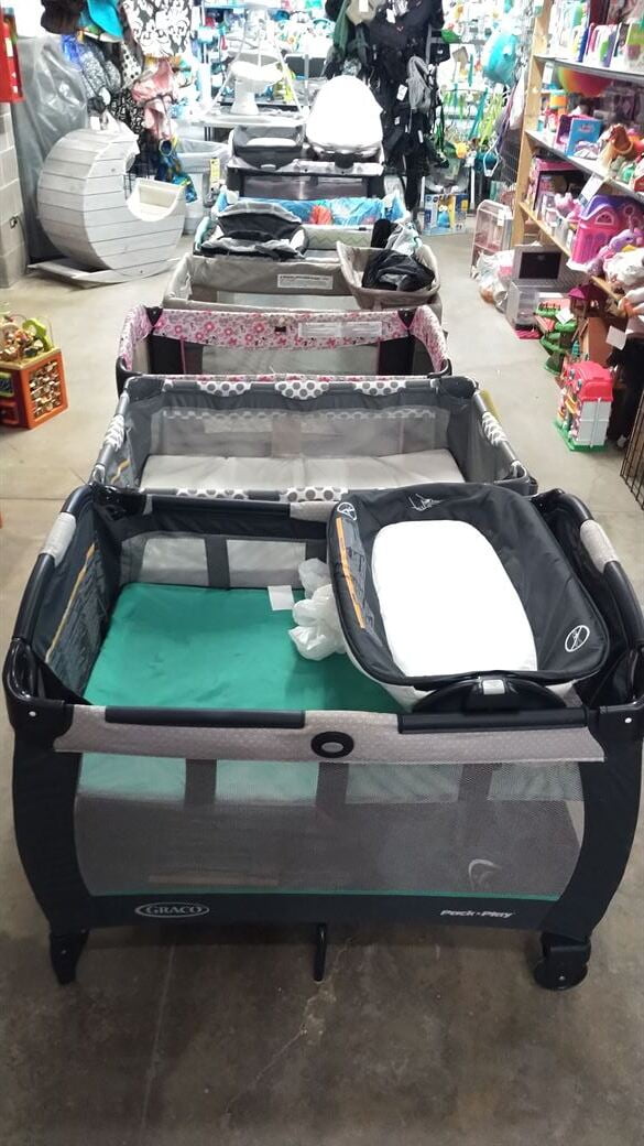 Strollers, Bouncers, Jumpers, Cribs, Pack N Plays, Bassinets, Riding Toys, Entertainers, Swings, Boppy Pillows, Bumbos, High Chairs, Bathtubs, Booster Seats, Play Kitchens, Tool Benches, Doll Houses, Dolls, Games